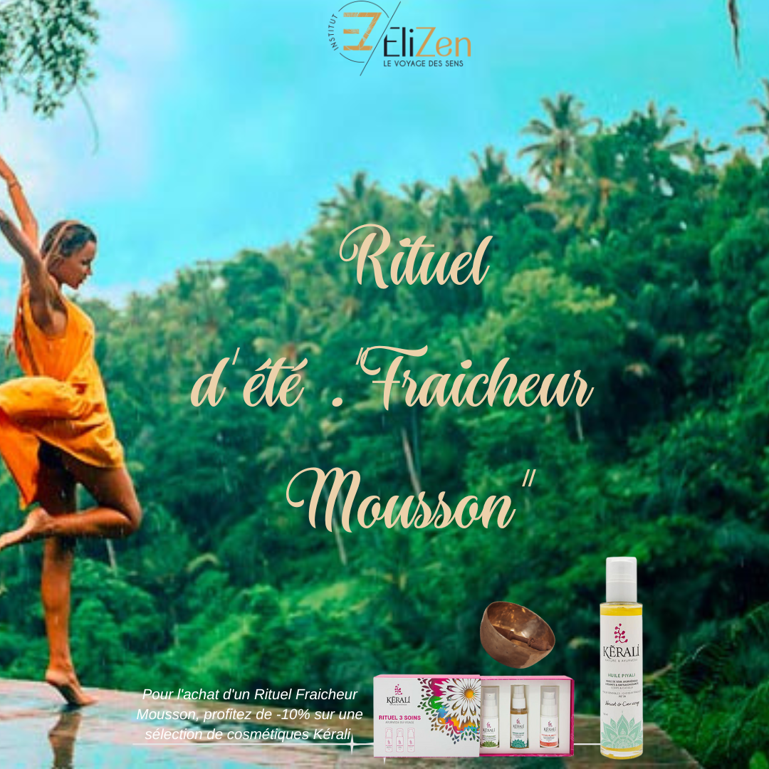 Pour vous apaiser et vous rafraichir, nous vous proposons le Rituel Fraicheur Mousson : Combiné corps et visage : ce soin débute par un soin du visage flash et se poursuit par un massge et un gommage des jambes. Un massage au bol kansu le termine ...